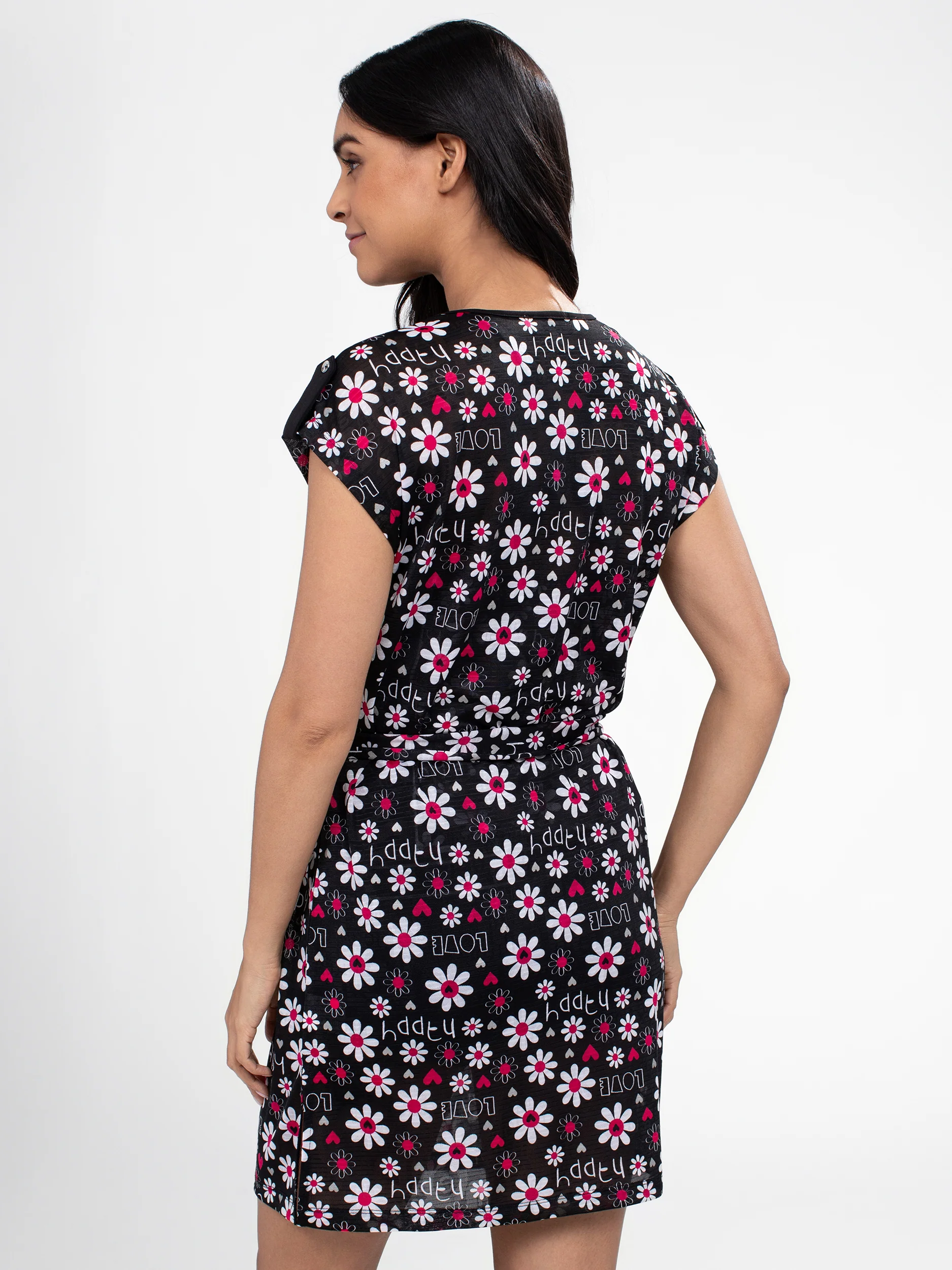 Cette robe de plage légère arbore des motifs fleuris et des messages positifs, parfaits pour une journée ensoleillée. Sa ceinture à nouer met en valeur la taille tout en offrant une touche féminine.